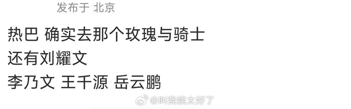 《玫瑰与骑士》这档综艺节目最近一波阵容可真是让人眼前一亮!不仅有“国民女神”迪丽热巴加盟,还有刘耀文、李乃文、王千源、岳云鹏这四位大神同台,组合起来简直是“全能阵容”啊!,迪丽热巴作为综艺新人,自然是节目里的一股清流,她的严谨和专业让人感受到综艺主持人的责任感,每次她开口都像是在说一堂课似的,气场十足,逻辑清晰,完全有能力带领这档节目走向成功,而她的搭档们呢?刘耀文这位“学霸”一向人格稳重,面对任何题目都能冷静分析,分析得你一头雾水,逻辑推理能力堪比推理游戏高手,李乃文则是这档综艺的“活雷器”,他总能在最意想不到的时刻说出让人捧腹的大笑话,连迪丽热巴都忍不住笑出声来。,而说到才华,王千源和岳云鹏两位小鲜肉更是不容小觑!王千源是个“百战百胜”的才子,在节目里不论是知识题目还是才艺挑战,都能稳稳拿下,连“一分为百”的问题他都能轻松应对,而岳云鹏则是这档综艺的“小鲜肉”,他的调皮捣蛋和机智幽默让人忍不住为他加分,他的每一个动作和言语都像是精心设计的“小宝贝”,让人看得入迷。,节目里最惹人注目的莫过于迪丽热巴和其他四位嘉宾的互动,每次她严肃认真的样子被其他嘉宾打断,表情瞬间变得无辜又可爱,简直是“雪中之莲”,而其他嘉宾也总是用他们独特的风格来“扰乱”她的节奏,刘耀文的严谨,李乃文的调皮,王千源的才华,岳云鹏的机智,四个人各有各的风格,组合在一起简直是“多米诺骨牌”,每一块都能完美衔接。,《玫瑰与骑士》这档综艺节目的阵容真是让人期待爆棚!不管是主持还是嘉宾,都各有各的特点,互动精彩,节目形式新颖,绝对能带来一波高质量的综艺观赏!