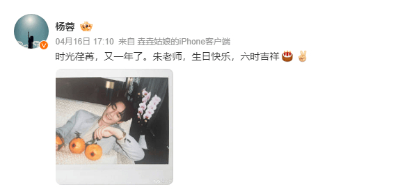 据悉,自从朱一龙和杨蓉合作拍摄《情定三生》之后,二人每年都会发文为对方庆祝生日,大大方方送祝福!