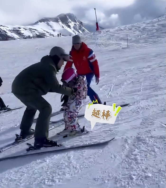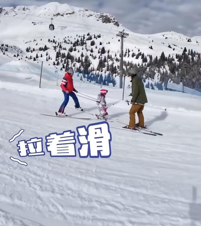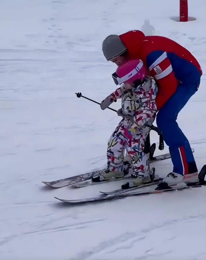 向佐还抱着女儿花样滑雪,还拉着女儿滑,满足女儿一切需求,从这也能看出,向佐的滑雪技术确实很专业。