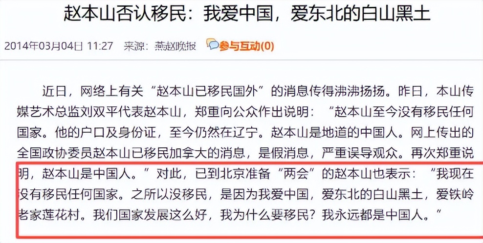 话说本山大叔如今身价已然上亿了,也许正是如此加上他的影响力,网上就总会传出他“移民国外”的消息。