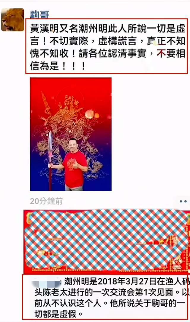 崩牙驹曾在朋友圈回怼潮州明,声称对方的一些言行存在很大的问题:黄汉明又名潮州明,此人所说的一切都是虚言,不切实际,虚构谎言,真正不知愧不知收,请各位认清事实,不要相信为是。