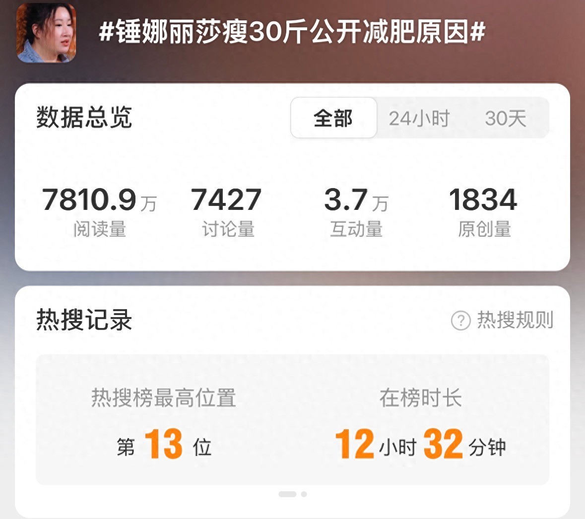 近日,锤娜丽莎在节目中透露自己3年减了30斤,并公开减肥的原因,引发网友热议。