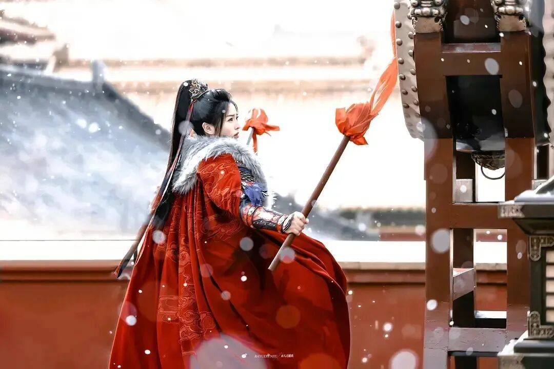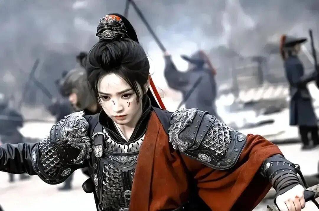 后期,她为寻夫婿披上战甲,红衣束发,手握兵器驰骋沙场,眼神瞬间变得锐利果敢,飒爽英气扑面而来。