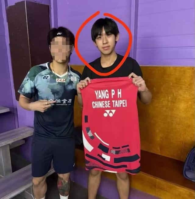他像是学校羽毛球队的成员,穿着球衣,脸上自信十足。
