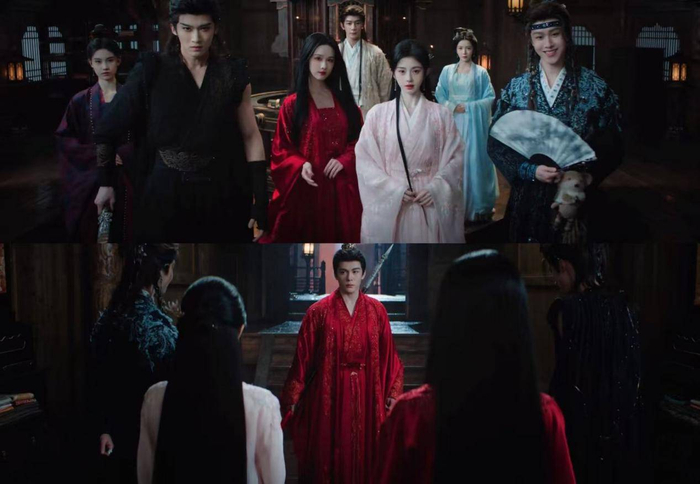 《月鳞绮纪》并未在开篇便铺陈世界观,而是以连环凶案切入,借神秘狐妖杀人事件引出主要人物。所有人聚拢在韦府之内,而狐妖就隐藏在众人之间。如观众所言,整场戏仿佛一出大型剧本杀。