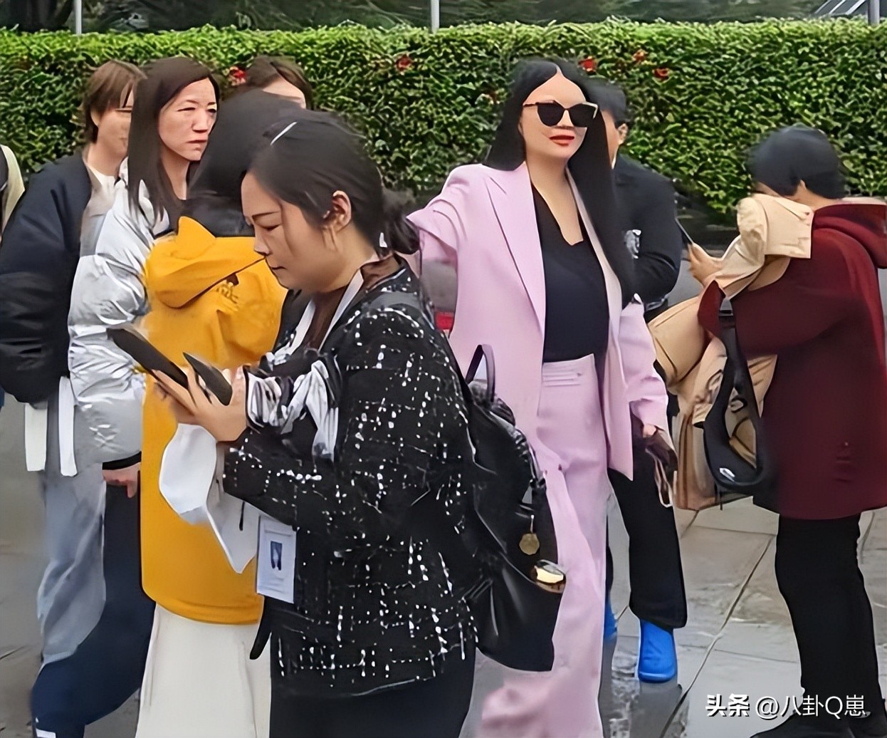 当天李湘一身粉色的西装,身材和过去比起来真的有非常大的差距。