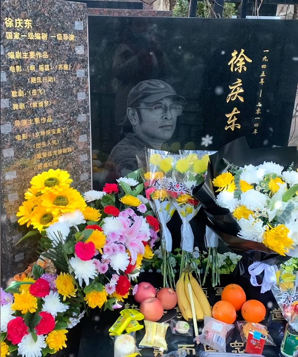 墓碑前摆满了鲜花、水果、二锅头、香烟和各种零食——全都是徐庆东生前的最爱,这份用心的细节,无声诉说着跨越时间的思念。