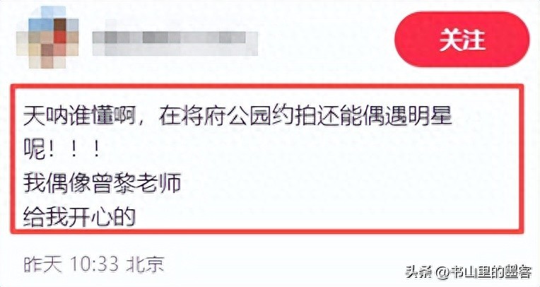 4月6日,有网友晒出,自己在北京将府公园散步时偶遇曾黎的照片,没想到随手一拍,竟然让网友们不淡定了。