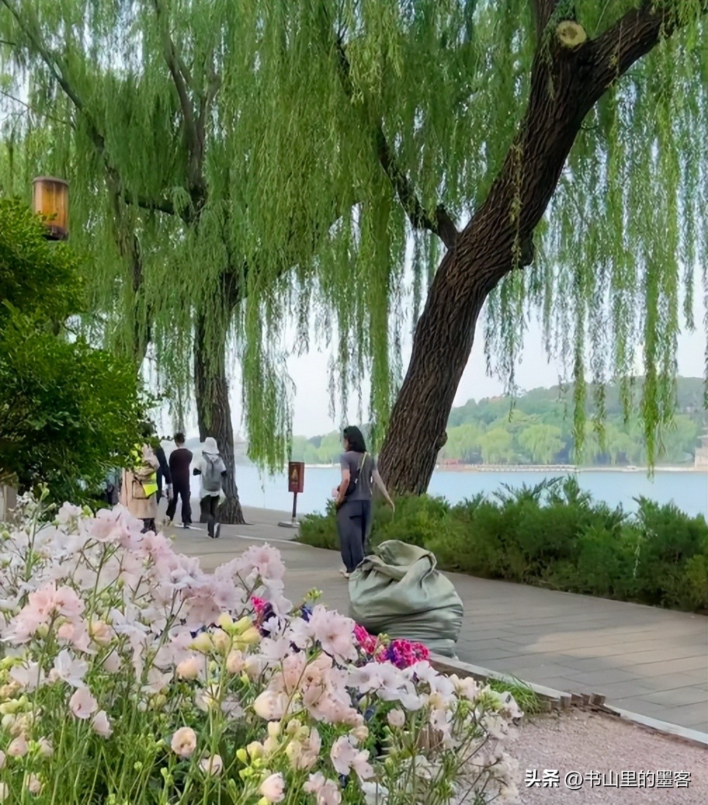 她走在公园的小路上,身边也没有助理跟着,就跟普通来踏青的市民一样,慢悠悠地看看花草,偶尔停下来四处张望,整个人慢慢的松弛感。