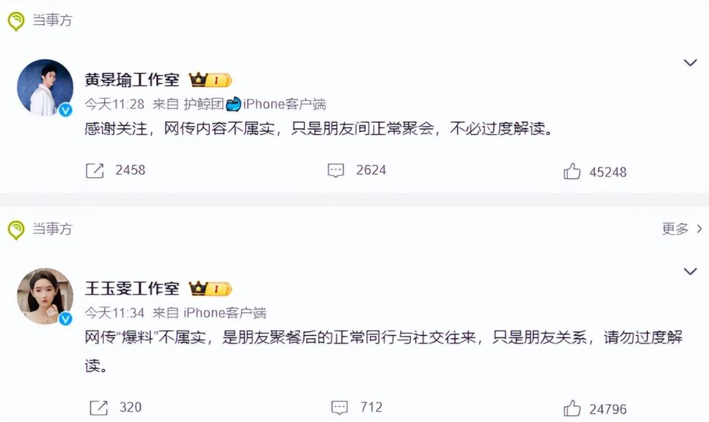 让人意外的是,消息曝光仅几分钟,双方工作室就同步发文辟谣,称两人只是朋友关系,此次同行只是正常社交,不必过度解读。