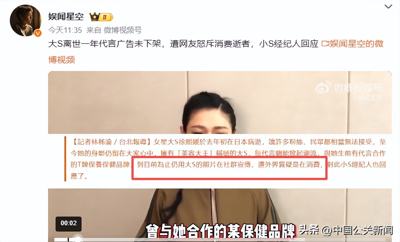 一个是大S离世后,生前合作的某保健品牌仍在使用她的照片做宣传,引发外界质疑“人走广告还在,是不是消费逝者”,但也有人觉得这样挺暖的,是用另一种方式延续她的存在;也有人觉得商业广告和悼念之间那条线有点模糊。
