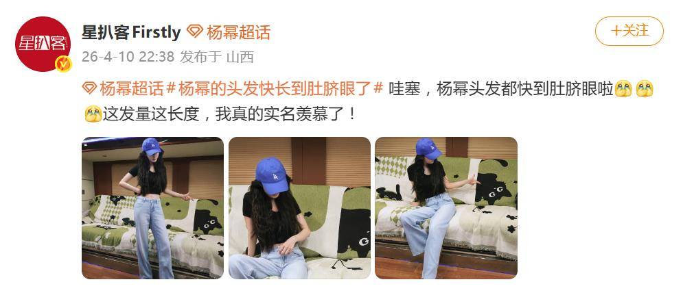 近日,杨幂凭借一头垂至肚脐眼位置的乌黑长发,再度强势霸占热搜。“杨幂的头发快长到肚脐眼了”这个话题下,全是网友排着队的惊叹和羡慕。