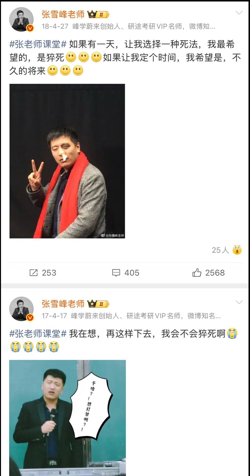其实张雪峰早就知道自己的身体情况了,只可惜啊,被公司业绩绑着,被员工绑着,想停下来都没办法,也不知道张雪峰自己后悔不后悔呢