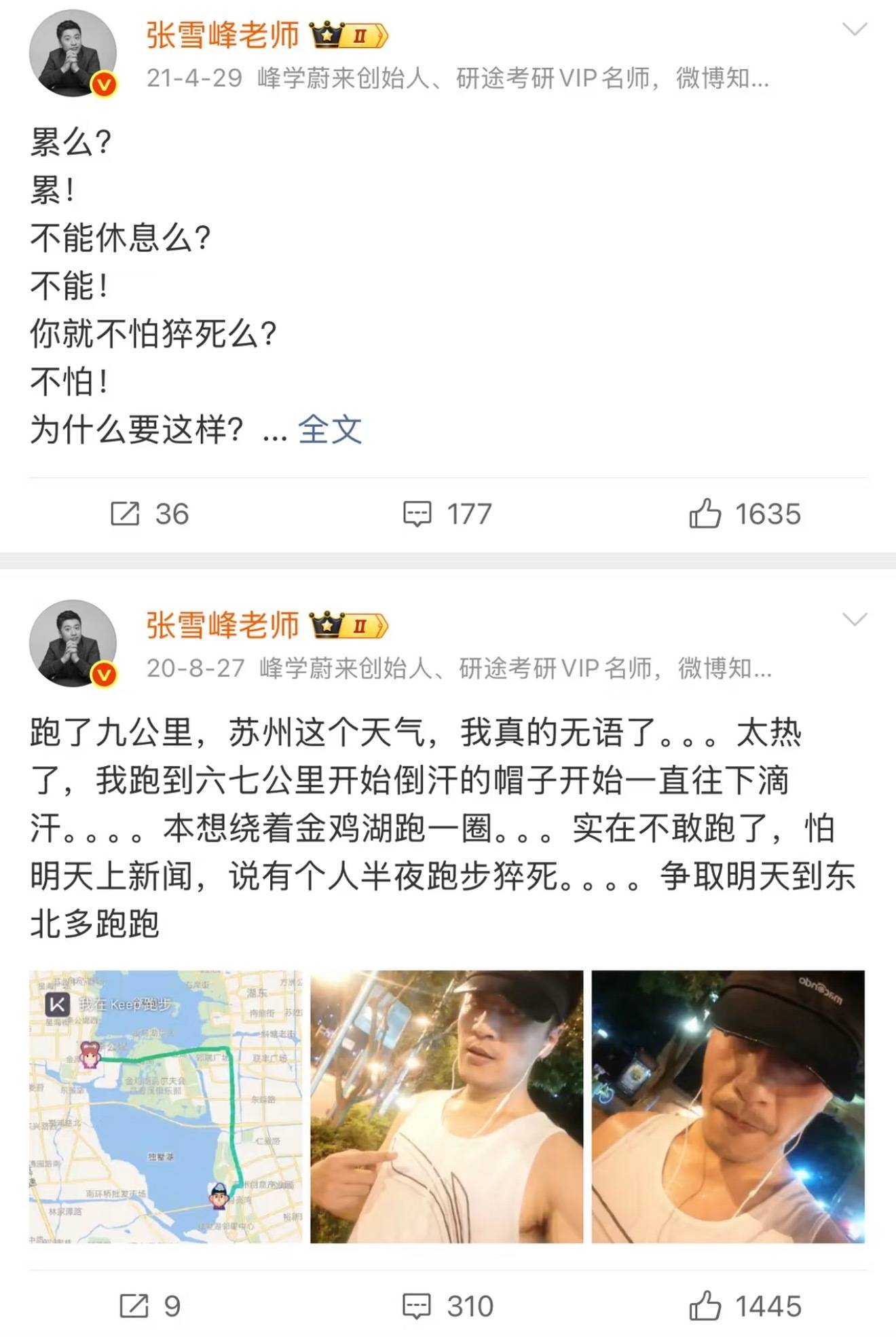:可能张雪峰老师预感自己会不在,因为太累了,责任太重了,觉得跑步可以释放压力,觉得是自己的独处时间