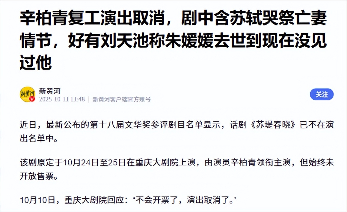 直到同年 9月末,重庆大剧院公布的演出阵容中,意外出现了辛柏青的名字,宣告他即将重返舞台。