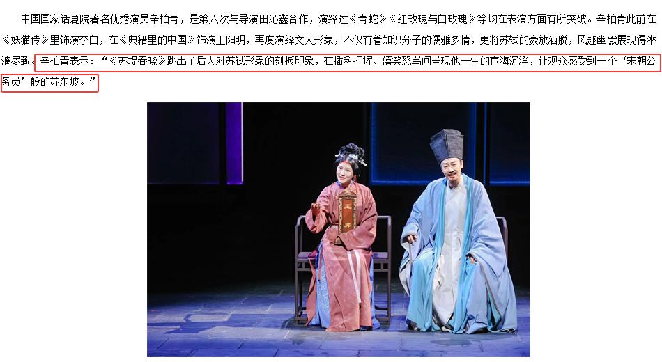 其实辛柏青在 2023年11月《苏堤春晓》首演的时候,就饰演过苏轼。