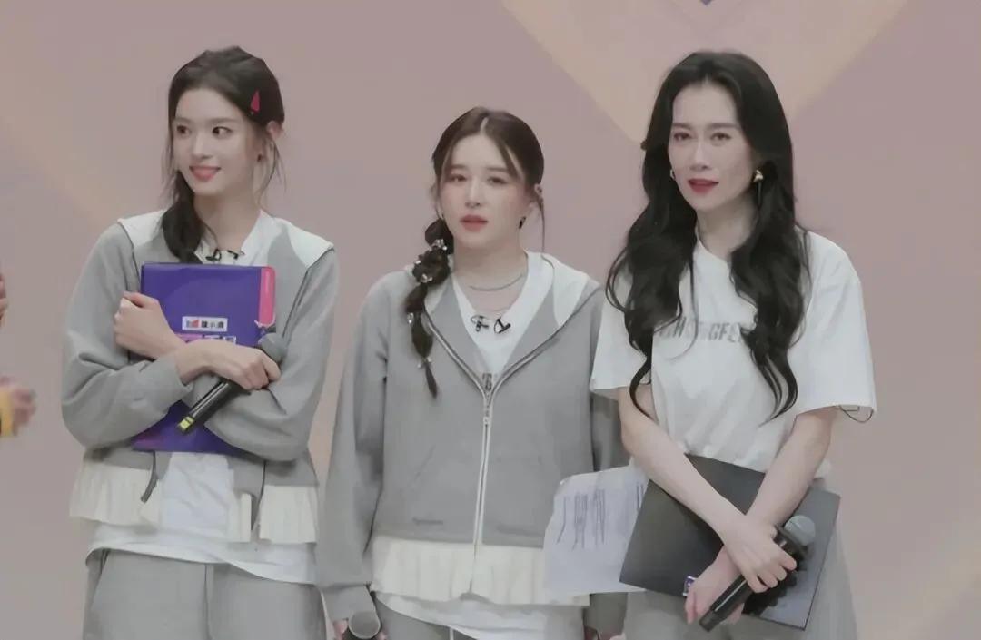 唐艺昕总体来说还稍微好一些,也在很努力地带动两个姐姐,但就是带不动。