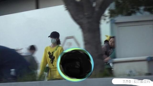 视频中,唐艺昕一身黄色休闲卫衣外搭休闲裤,带着口罩外带黑色鸭舌帽,斜挎绿色小挎包,显得格外引人注目。