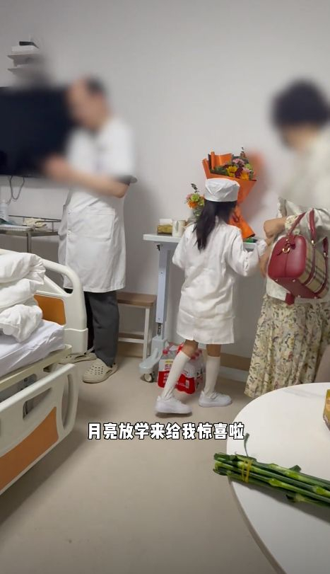 与此同时,老公付辛博带着7岁女儿小月亮前来探望,女儿甚至穿上小小护士服,萌态十足,一家人的温馨互动冲淡了手术前的紧张氛围。不过,也有网友吐槽:“生个病也要拍vlog,是不是太爱刷存在感了?”
