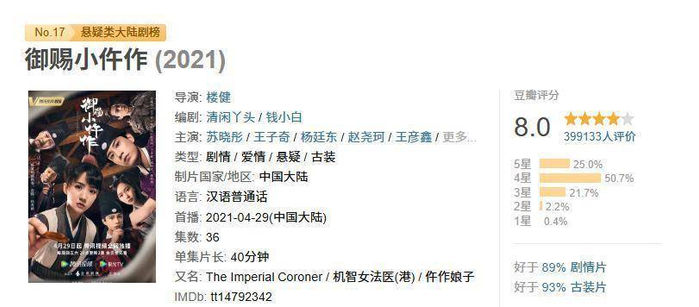 可以说,《御赐小仵作2》依旧沿用了第一部的精髓,那节奏、剧情和人物设定都保持了原汁原味,而且整体质感还提升了不少,画面效果、服装和道具都不比那些大制作的古装剧差,让人追得特别放心。
