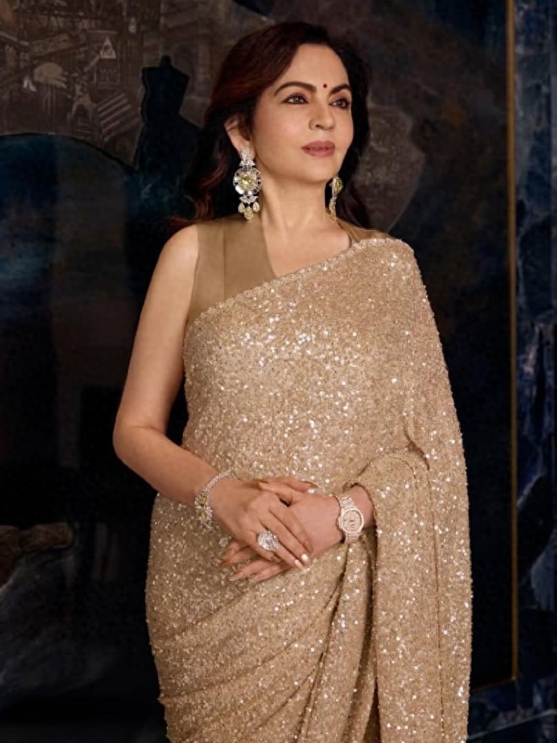 **吃瓜简评:印度首富妻子重穿女儿遗留香槟金纱丽,配百达翡丽腕表,手拿香奈儿珍珠包,惊艳银幕奖现场!**,印度银幕奖上,妮塔・安巴尼的造型堪称一场视觉盛宴!作为印度首富穆克什安巴尼的妻子,这位“印度最美夫人”一次又一次证明了自己的时尚智慧和无与伦比的优雅气质,她的穿搭不仅让人惊叹于她的品味,更让人感叹于她对传统与经典的独到诠释。,妮塔这次选择了萨比亚萨奇·穆克吉设计的“阿卡西塔拉”香槟金纱丽,这款纱丽是她女儿伊莎在202年私人婚礼上首次亮相的礼服,时隔六年,妮塔选择在如此重要的场合重新穿上这件经典纱丽,不仅展现了她对经典的极致追求,更让这件纱丽从普通的高级订制服饰升华为一件承载家族记忆与情感的“传家宝”,这件纱丽的设计极具匠心,布满纯手工亮片刺绣,在聚光灯下如液态金属般流动,宛如繁星点缀,既贴合盛典的隆重氛围,又尽显东方传统服饰的雅致韵味。,在配饰方面,妮塔更是将奢华与传承感推向了极致,她佩戴了一枚极为稀有的百达翡丽鹦鹉螺腕表,表盘镶嵌着2364颗精选钻石,总价值约4亿卢比(约合2956万元人民币),这枚腕表简洁的纱丽线条更衬托出钻表的璀璨,搭配镶嵌白钻、黄钻与祖母绿的耳环、手链和梨形戒指,整体造型尽显印度王室般的尊贵气场,这一套配饰不仅展现了妮塔对奢华的无限热爱,更让人感叹于她对传统与家族情感的深刻理解。,在手袋选择上,妮塔展现了极高的时尚品味,她舍弃了繁复的设计,选择了香奈儿2026秋冬高级时装系列的珍珠造型手拿包,手拿包上的圆润珍珠简直比拳头还大,真是让人忍不住感叹:有钱人买什么都有底气!这不仅仅是款式的选择,更是妮塔对细节的极致追求,展现了她对时尚的独到品味。,妮塔在银幕奖上的表现不仅让全场为之惊艳,更引发了时尚圈的广泛讨论,在当下追求“快速换新”的时尚环境中,妮塔用重穿旧衣的行动,打破了人们对顶级名流穿搭的固有认知,诠释了永续时尚的真谛——奢侈品从来不是消耗品,而是可以被继承、承载家族故事的资产,她的这一举动不仅让人们重新思考时尚的意义,更让人们感叹于传统与经典的永恒魅力。,妮塔・安巴尼在印度银幕奖上的穿搭不仅是一场视觉盛宴,更是一场文化与情感的传承之旅,她用经典与奢华诠释了时尚的永恒价值,让人们看到了高级时装的另一面——它不仅仅是衣物,更是一种文化的传承和情感的寄托,无论是纱丽的设计、配饰的选择,还是手袋的款式,妮塔都展现了她对时尚的独到理解和对传统的深刻热爱,她的表现不仅让印度银幕奖变得更加精彩,更让人们重新思考了“时尚”的真正含义。