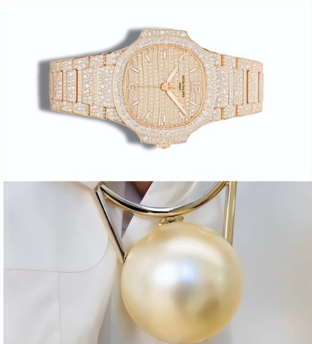 除了这件极具情感重量的纱丽,妮塔的配饰搭配更是将奢华与传承感推向极致。她佩戴了一枚极为稀有的百达翡丽鹦鹉螺腕表,表盘镶嵌着 2364 颗精选钻石,总价值约 4 亿卢比(约合 2956 万元人民币),简洁的纱丽线条更能衬托出钻表的璀璨,搭配镶嵌着白钻、黄钻与祖母绿的耳环、手链和梨形戒指,整体造型尽显印度王室般的尊贵气场。