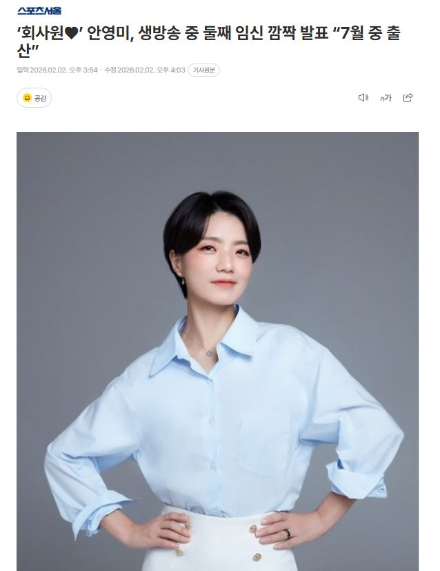 其所属经纪公司Media Lab SISO于2日向媒体证实:“安英美目前已怀二胎,预计今年7月初分娩”,并呼吁公众“以祝福之心给予支持”。