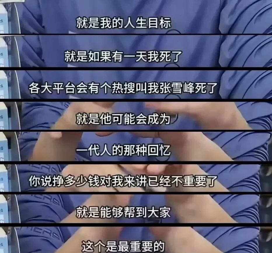 就像张雪峰生前谈及生死,提到自己想上热搜,想活在一代人记忆里,一次又一次主动提及关于唯一女儿未来安排,这就是他想要的。