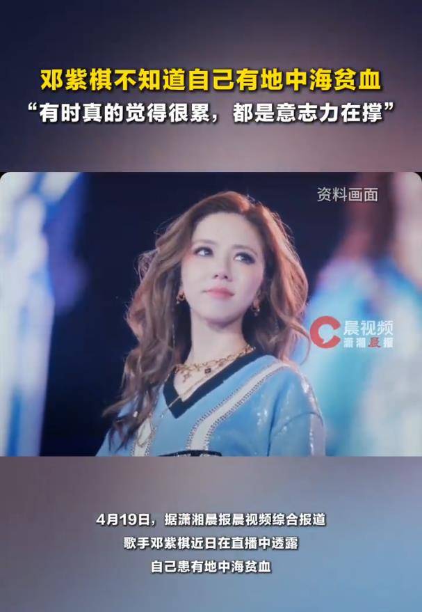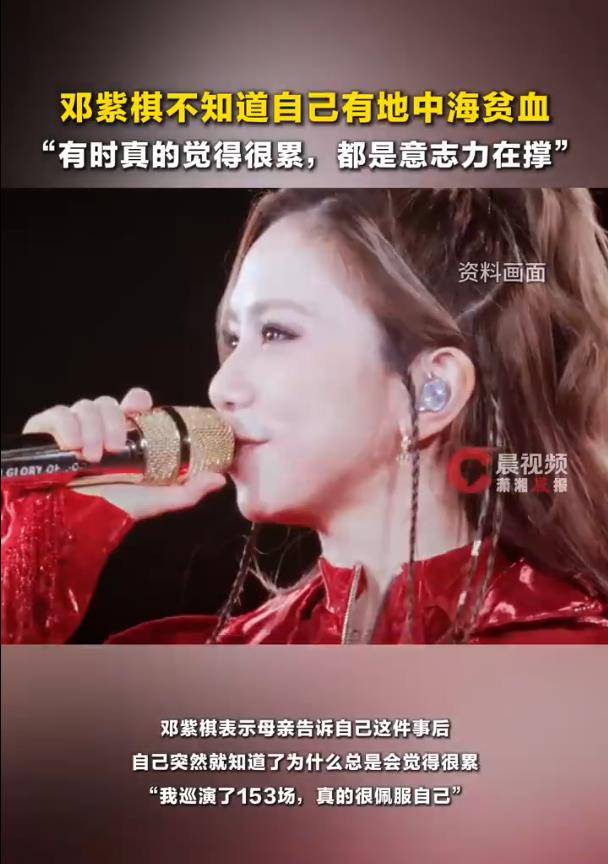 ## 邓紫棋地中海贫血自曝:153场巡演背后的"身体艺术家"惊人毅力, , 在4月19日的直播中,邓紫棋用一声"我不知道自己有地中海贫血"的惊人自白,让粉丝们瞬间破防,这位"偶像"的坦诚,犹如一记重锤,撕开了明星光环背后的健康隐患。, , 这场直播,不仅仅是邓紫棋向粉丝们坦白健康状况的场景,更是一场关于身体与意志的深度对话,当她说出"巡演了153场,真的很佩服自己,原来身体上有这些状况,在舞台上都是意志力在撑"时,听众们不禁为之动容,邓紫棋的这段话,仿佛在向世界展示了一张真实的身体画像,而这张画像上,不仅有着惊人的职业精神,更有着与生俱来的身体条件。, , 粉丝们纷纷留言,称赞邓紫棋是"用意志力创造巡演奇迹"的"身体艺术家",这些粉丝们的关心与支持,恰恰展现了明星与粉丝之间那份特殊的情感纽带,但更让人深思的是,不少患有地中海贫血的网友也纷纷站出来,他们用自己的经历告诉邓紫棋:"别担心,我们日常也能过得很好。"这番话,不仅温暖,也带着一丝无奈,地中海贫血虽不严重,但对于一个需要频繁出场的演员来说,确实需要特别的注意。, , 地中海贫血,又称珠蛋白生成障碍性贫血,是一组遗传性血液疾病,这种疾病源于珠蛋白基因的变异,会导致红细胞无法正常生成,虽然日常生活中并不致命,但对于需要精力充沛的职业人士来说,确实需要特别注意身体状况,邓紫棋的坦白,让这群患者感到被理解和支持,也让更多人开始关注这并不罕见的疾病。, , 邓紫棋的坦诚,不仅仅是一次健康告知,更是一次职业生涯的告别仪式,在舞台上,她用自己的身体演绎着一场惊心动魄的"身体艺术",153场巡演的背后,是无数个不眠之夜,是无数场精准的舞台表演,这些,都是邓紫棋用自己的身体力行诠释的"职业荣誉"。, , 这场直播,让我们看到了明星背后的真实,邓紫棋用自己的方式向大家展示了什么是职业精神,什么是坚持不懈,她的坦白,不仅让粉丝们感动,也让我们看到了明星在面对身体困扰时的坚韧,邓紫棋的榜样作用,不仅仅是因为她是业内的佼佼者,更因为她用自己的经历告诉我们:生命中的困难,并不可怕,可怕的是对困难的逃避。, , 在这个追求完美的时代,邓紫棋的坦白给我们带来了一个重要的启示:健康才是最重要的财富,无论是明星还是普通人,都不应该忽视身体的呐喊,邓紫棋的直播,不仅是一场关于身体的对话,更是一场关于生命的启示,让我们记住:真正的坚强,不是无视身体的疼痛,而是学会倾听身体的呼唤,给予它必要的关怀与呵护。