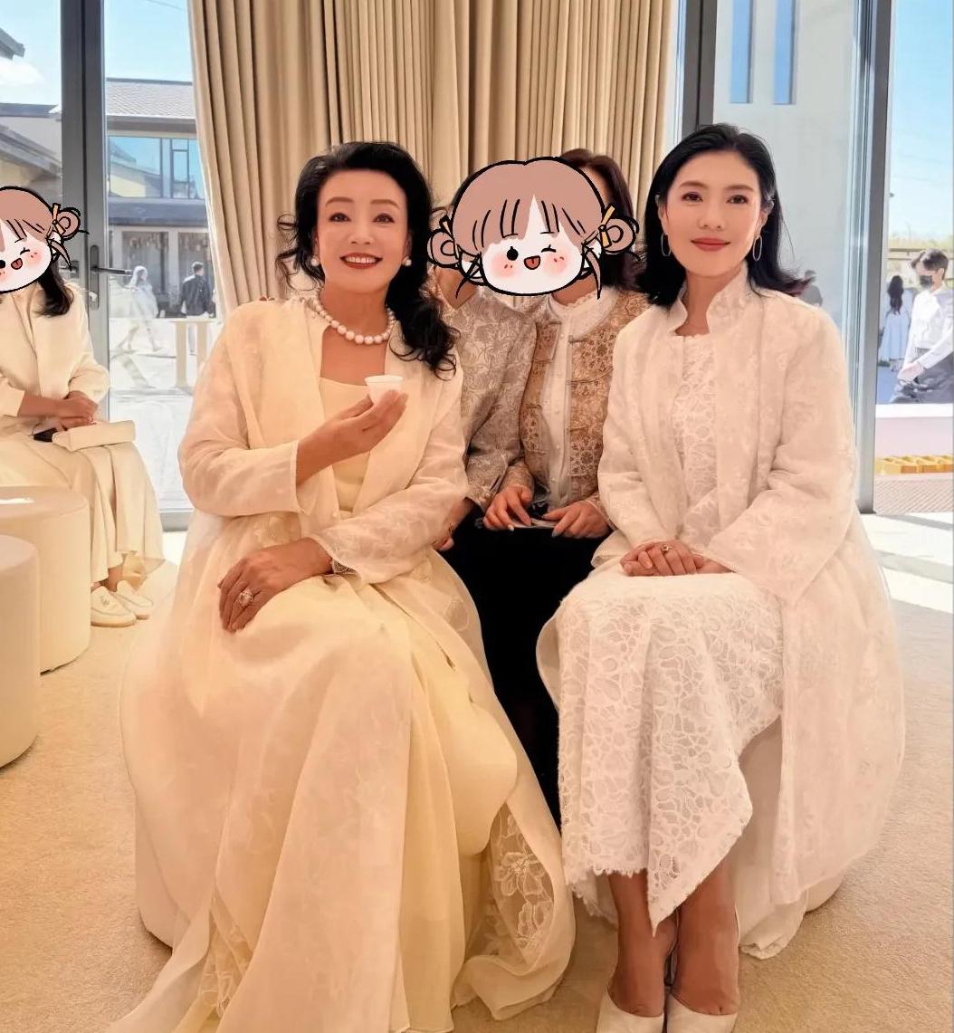 张兰也穿白,一整套很讲究,连耳环和眼镜都往“同色系”靠,干净、克制、还挺会。