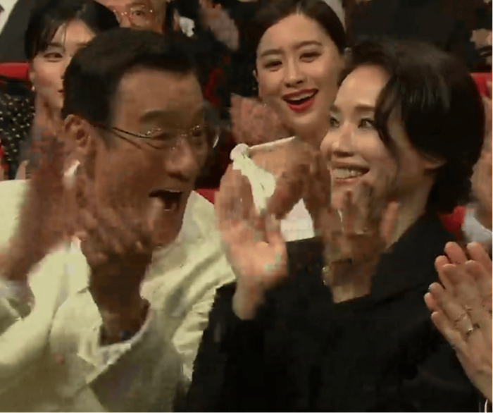 舒淇本人获奖时很淡定,身边的梁家辉却直接笑开了花。