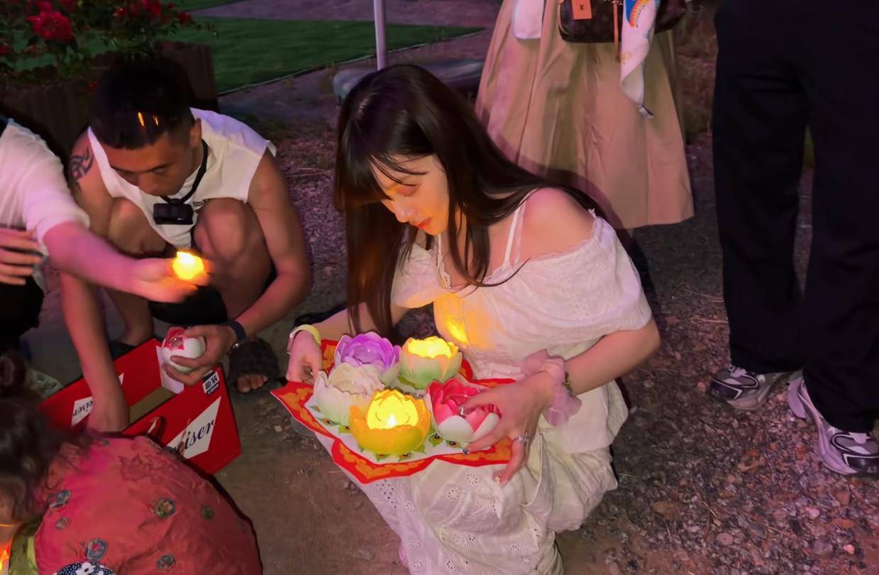 视频里,李小璐在用餐时品尝了不少当地特色美食,现场还有人助兴唱歌,气氛相当热闹。这还没完,用餐结束后,她还去体验了放水灯的环节,为这趟旅程再添一份惊喜。
