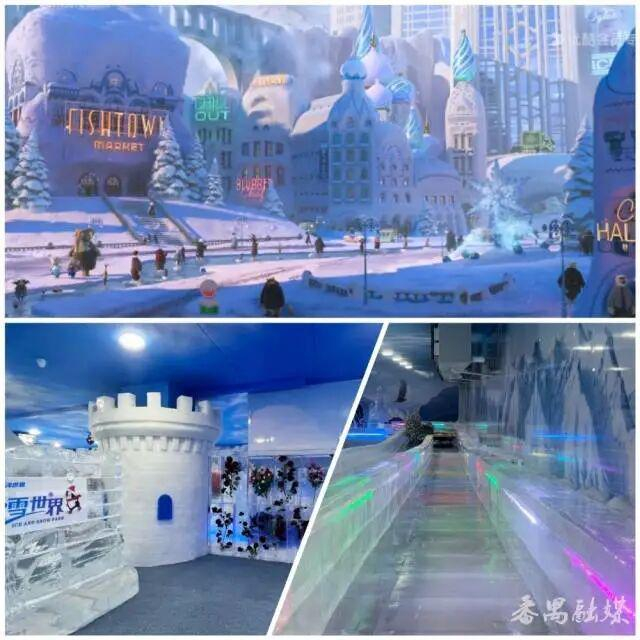 冰川镇雪景悠闲迷人,这份雪国意境,在广州海洋世界的“冰雪世界”里得以重温。童话城堡、晶莹冰雕、彩灯映照的冰道,尽管规模不同,但冰凉的空气与脚下咯吱作响的“雪地”,都带来真实的冰雪体验,让大家体验一把北方人的快乐。