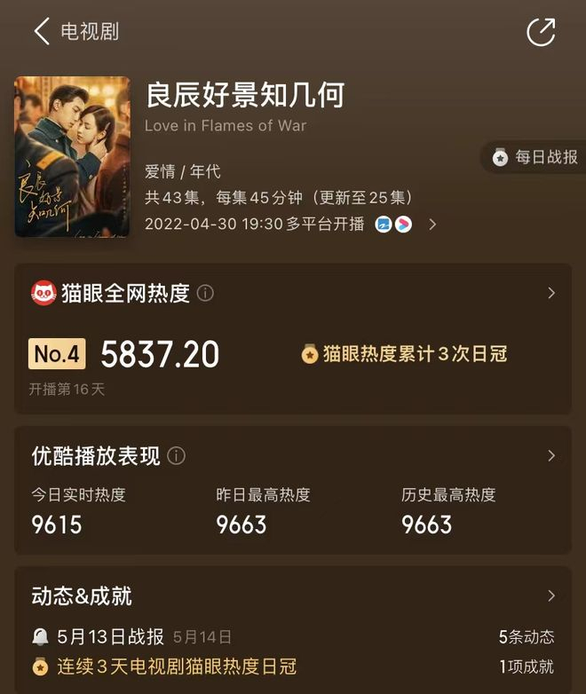 现今有一部同样是五月份推出的影视剧,而且还受到不少观众的追捧观看,它即是在优酷播出的《良辰好景知几何》。