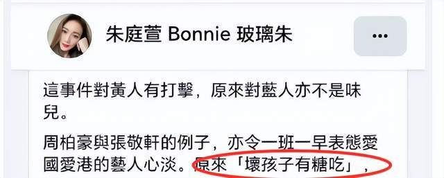 除了这两位香港艺人之外,“玻璃珠”朱庭萱也在留言处表达自己的态度。