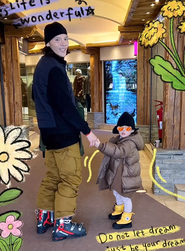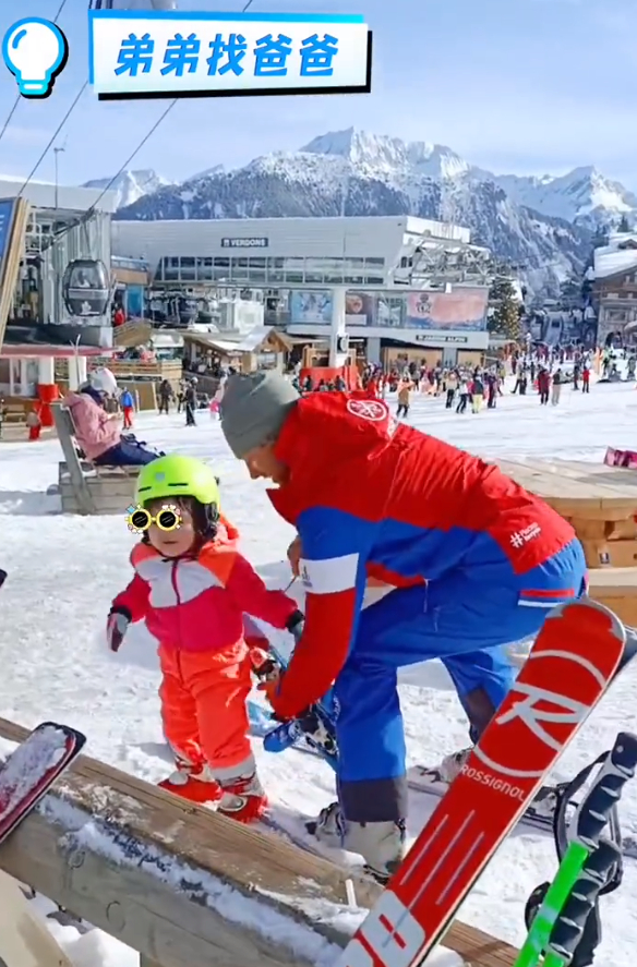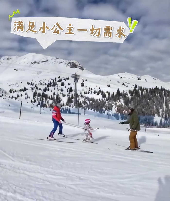 向佐还抱着女儿花样滑雪,还拉着女儿滑,满足女儿一切需求,从这也能看出,向佐的滑雪技术确实很专业。