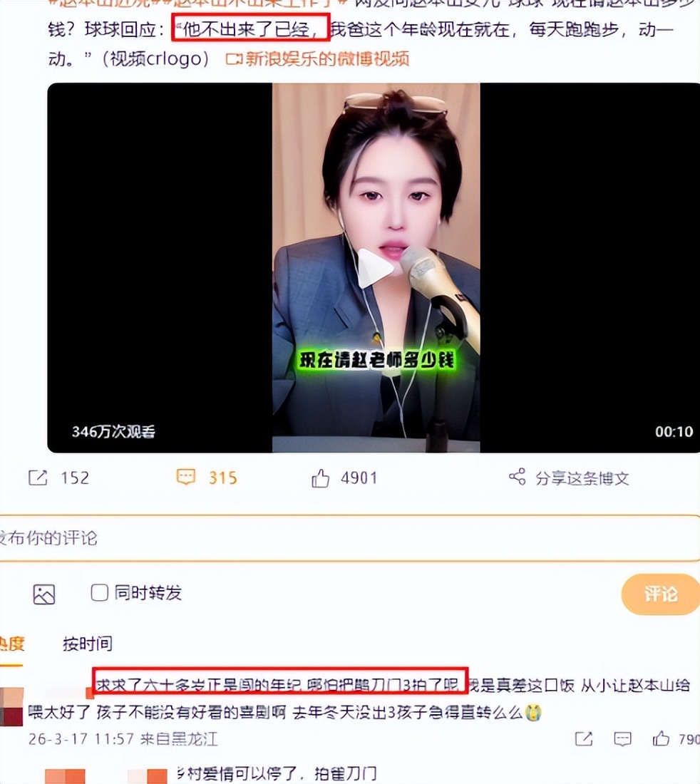 其实从球球的话语中也能明白,本山大叔现在年事已高无论是身体还是状态都大不如前。