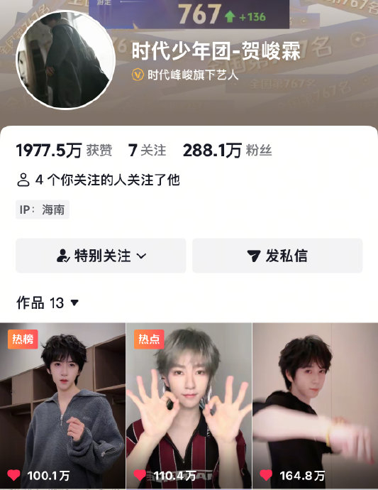 当网友质疑"为何总跳抖舞",粉丝直言:"内容决策权在本人!大家爱看,他爱跳,这就是底气"。从舞台到短视频,贺峻霖以"六边形战士"实力(舞蹈速学能力获职业舞者认证)证明:偶像破圈无需依赖传统资源,而可通过创造全民参与的文化符号实现影响力裂变。