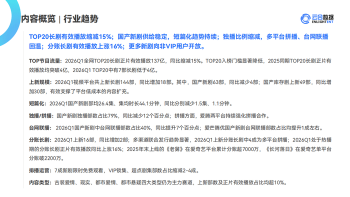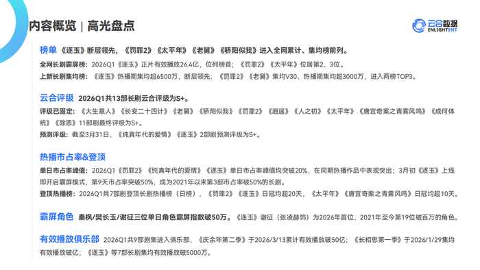 今天分享的是:2026Q1长剧集网播表现与上新观察报告-云合数据