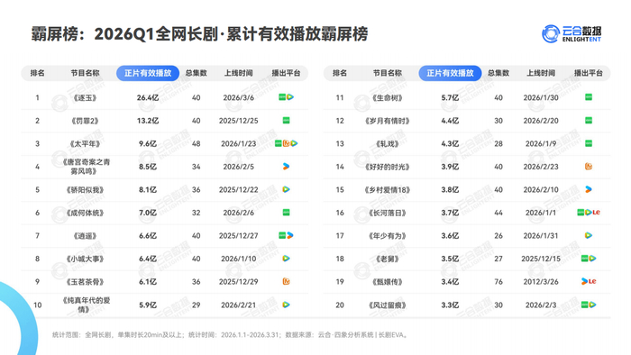 2026年Q1长剧集网播报告:头部剧集断层领先,行业迎来三大拐点