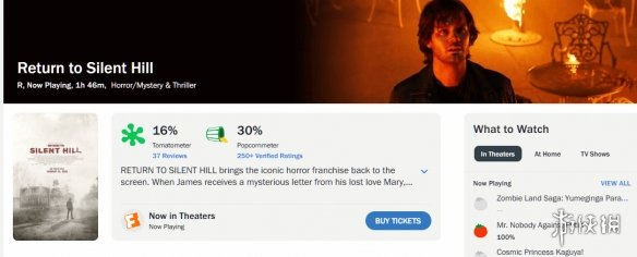 改编自经典恐怖游戏《寂静岭2》的真人电影《重返寂静岭》已于1月23日正式上映。目前,该片在知名影评网站烂番茄上的观众评分(爆米花指数)仅为30%,媒体评分(新鲜度)则由最初的7%小幅上升至16%。