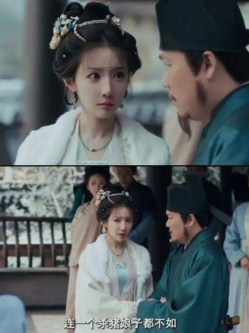崔千金是县令家的掌上明珠,出场时便带着一股娇纵傲气,一身素雅却精致的闺阁衣裙,衬得她眉眼娇俏,肌肤莹润,活脱脱一幅“小家碧玉”画卷。