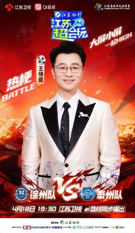 4月17日19:30,由江苏卫视、ai荔枝共同打造的《江苏超会玩》,将现场直播2026“苏超”联赛第二轮焦点战——徐州队主场迎战泰州队。同时小屏直播宿迁VS南京、淮安VS扬州。主持人王晓亚、解说员夏宇翔坐镇直播间。首期节目酷云收视省级卫视第一,全网曝光35亿,本期预计再掀热潮。