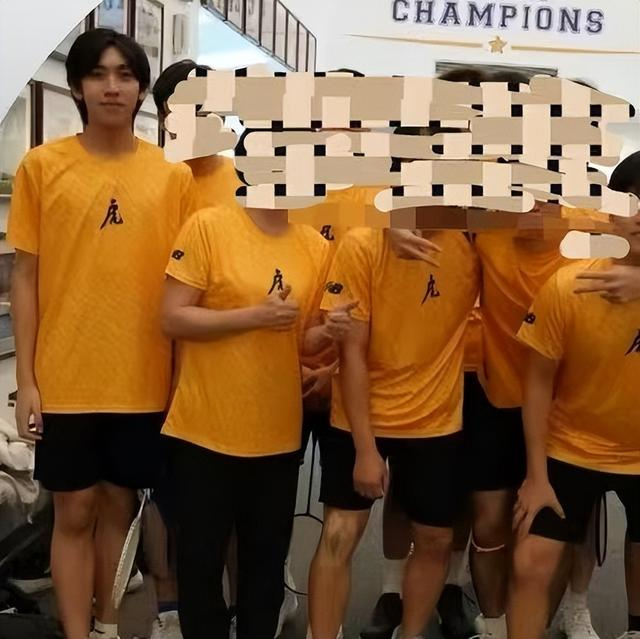 他像是学校羽毛球队的成员,穿着球衣,脸上自信十足。