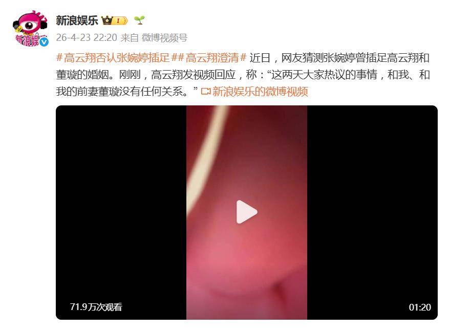 据4月23日晚间报道,高云翔通过一则视频公开表态,语气相当直接:“这两天大家热议的事情,和我、和我的前妻董璇没有任何关系。”一句话,把自己和董璇从这场舆论漩涡中摘得干干净净。他还在视频中强调,之所以选择在这个时间点发声,主要是不想让双方的子女被卷入这场风波,并呼吁网友“停止伤害无辜”。这波操作,也算是在这场混乱中给了一个明确的定性。