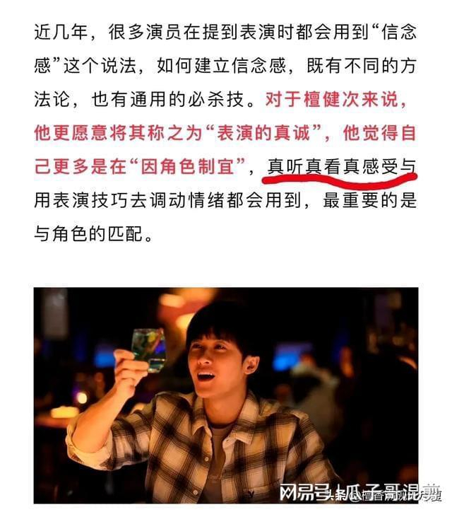 **吃瓜简评:檀健次谈“表演的真诚”——一场“演员大洗礼”**,博客天下采访了全能艺人檀健次,发文聊到了他对表演艺术的思考,作为一个多才多艺的艺人,檀健次的采访内容实在让人忍不住为他喝彩——他的思考深入、言之有物、条理清晰、真诚动人、富有哲理,是一位真正用心观察、思考和打磨的艺人。,在舞综《沸腾校园》中,檀健次作为辅导员对学员表演的指导也非常值得一提,他总是强调“表演需要真听真看真感受”,这句话也成为了他后来提及的“表演的真诚”,这位“多面手”不仅在舞蹈领域表现出色,在转型成为演员后也展现了惊人的潜力,他的《军师联盟》首部戏的成功,离不开他提前数月进组、每天都在认真听取老戏骨的指导、不断复盘总结的付出,这种严谨的态度,让他在短短一年的时间里,演技飞速进步,以至于观众都以为他是电影学院毕业的新人。,作为一名真正用心的演员,檀健次的成功不仅仅停留在表面的技巧运用,而是从根本上讲究“用心生成”,他每拍完一个镜头都会亲自看回放,认真复盘,检查自己的表演是否契合角色、情境、生活常识,甚至还会提出改进方案,这种对细节的把控和对业务的严谨态度,正是他能够迅速脱颖而出的关键。,相比之下,有些“演员”在采访中说的话,简直让人忍不住直摇头,他们谈论“化身角色时被附体”、“扭扭捏捏矫揉造作地表演”,听起来就像是在幼儿园的角色扮演游戏,完全没有把握住“演员”的基本要求,更讽刺的是,他们在表演中情绪到位,却无法塑造出令人信服的角色,这完全是因为他们只注重表面功夫,前期功课没做足,根本没真正理解和把握角色。,说到这儿,真想对那些“演员”大喊一声:“稍微用点心吧!”他们拍完一个镜头后能不能看看回放?那些“辣眼镜头”自己看下去吗?那些“拙劣的台词”自己听得下去吗?如果真心想进步,算了那些夸夸其谈的采访,先好好研究一番剧本、角色、情境吧!,真诚的演员是用心思考、认真打磨的结果,而那些只靠表演技巧、靠“歪门邪道”的人,终究只能荒废业务,正如檀健次所说:“心思用在哪里,成果就出在哪里。”用心思考,才能言之有物;言之有物,才能真诚动人;真诚动人,才能给人启迪,让我们期待更多像檀健次这样用心、真诚、有深度的艺人,给我们带来更多优秀的作品。