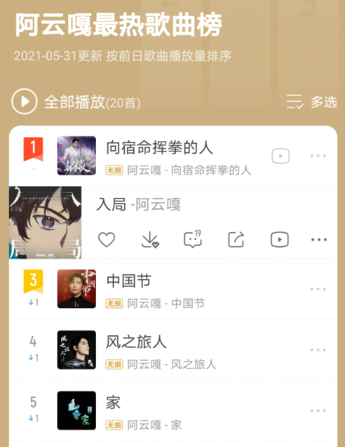 “阿云嘎什么风格都能驾驭,而且驾驭的很好”。“阿云嘎你还有多少惊喜”。“新感觉,好特别。”众多网友在酷我音乐评论区为阿云嘎隔空送上赞美,更有粉丝直呼“直接听醉啦”。凭借网友热捧,这首阿云嘎最新单曲也在短短一天之内进入酷我音乐“阿云嘎热歌榜”第二名。