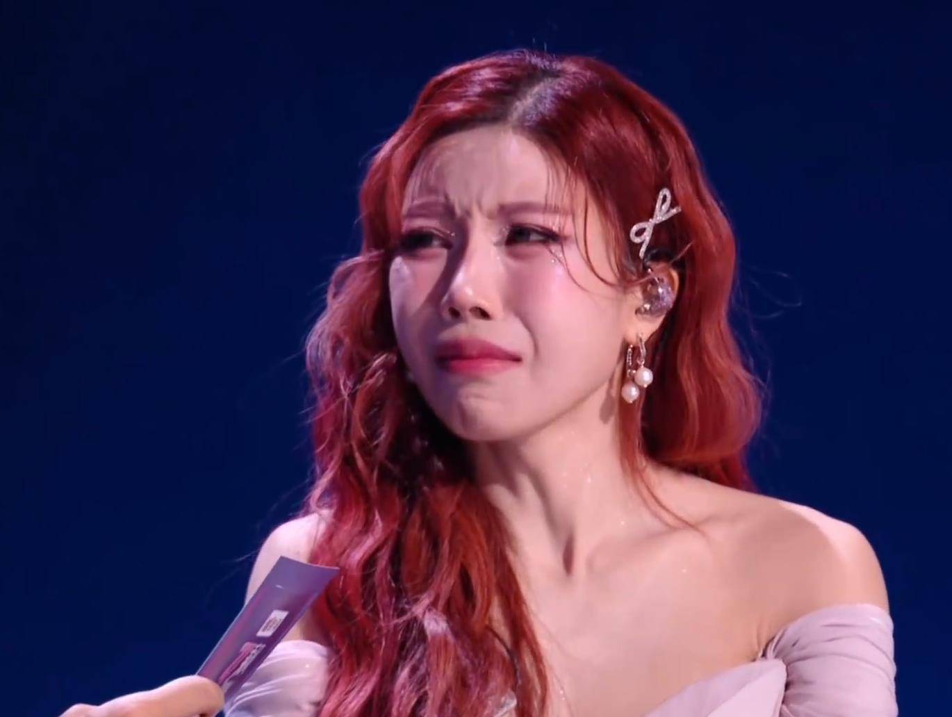 淘汰后的维妮娜,呈现给公众的是积极一面。她在社交媒体发文“雌鹰要继续翱翔”,姿态洒脱。但私下流露的细节却勾勒出另一幅画面:她曾透露“已准备好二公服装”,得知结果后崩溃大哭。直播中,她哭着表达对舞台的眷恋,渴望复活赛机会:“如果有机会,还想再唱一首歌,再见见姐姐们。”最令人唏嘘的是后台画面——她先是微笑着挥手告别,转身离开镜头后却蹲地痛哭,强烈的反差感戳中了无数观众。