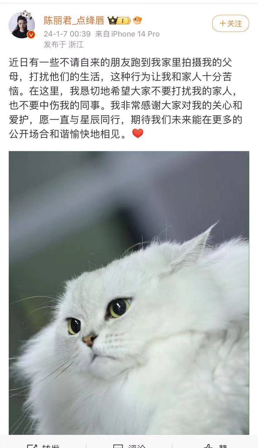 一般被私生粉困扰说明真的火了,陈丽君说近日有些不请自来的朋友跑到父母家拍摄他们,打扰他们的生活,这种行为让她和家人十分苦恼。恳切希望大家不要打扰她的家人,也不要中伤她的同事。非常感谢大家对她的关心和爱护,愿一直与星辰同行,期待未来能在更多公开场合和谐愉快地相见。