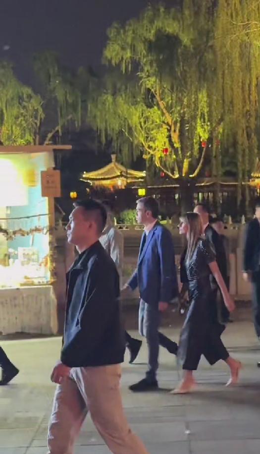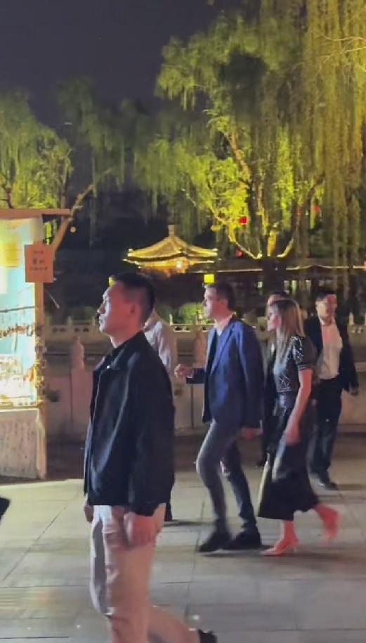 晚上,西班牙首相夫妇游什刹海被网友偶遇;只见桑切斯还是穿西服与牛仔裤,只不过衬衫换成了白色,一身混搭风依然帅气有型!